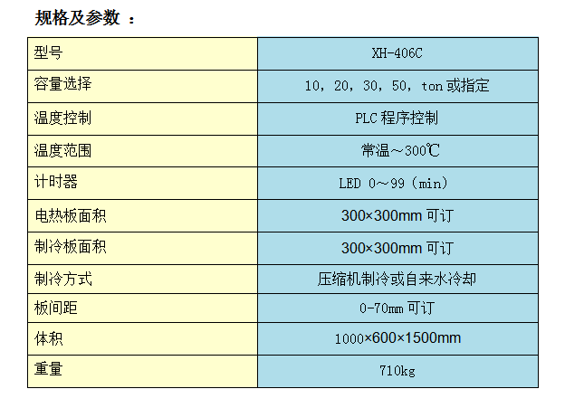 其主要功能是將原料放于鑄模內(nèi),夾于本機電熱平板間,加以壓力及溫度,以供試驗,做為工廠大量生產(chǎn)配料之依據(jù).